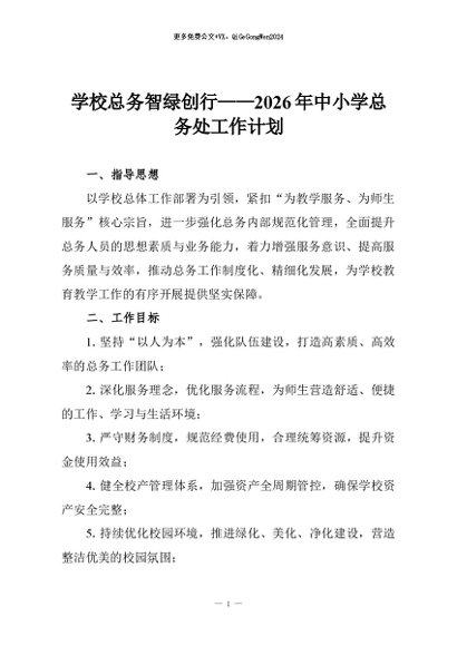 / 【七哥公文】2025年:学校总务智绿创行——2026年中小学总务处工作计划+更多免费公文+VX:QiGeGongWen2024