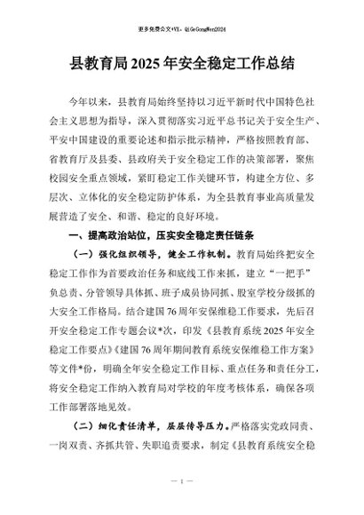 / 【七哥公文】2025年:县教育局2025年安全稳定工作总结+更多免费公文+VX:QiGeGongWen2024