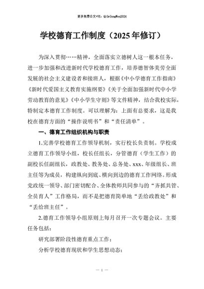 / 【七哥公文】2025年:学校德育工作制度(2025年修订)+更多免费公文+VX:QiGeGongWen2024