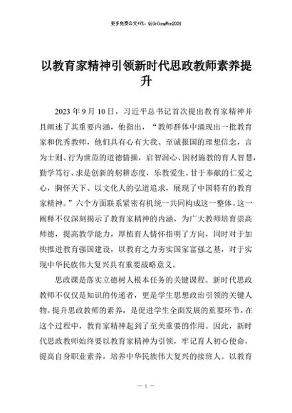 【七哥公文】2025年:以教育家精神引领新时代思政教师素养提升+更多免费公文+VX:QiGeGongWen2024
