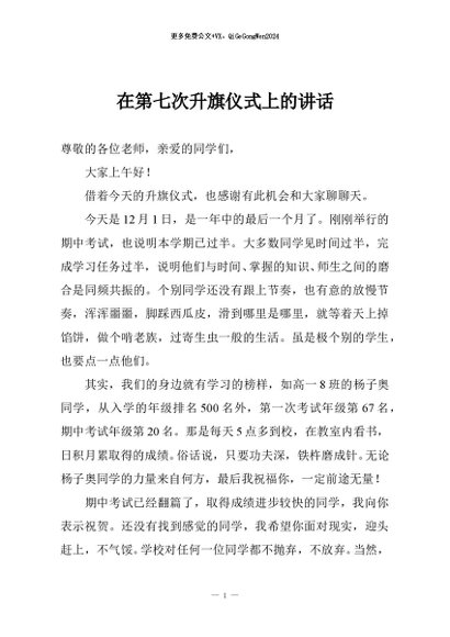 【七哥公文】2025年:在第七次升旗仪式上的讲话+更多免费公文+VX:QiGeGongWen2024