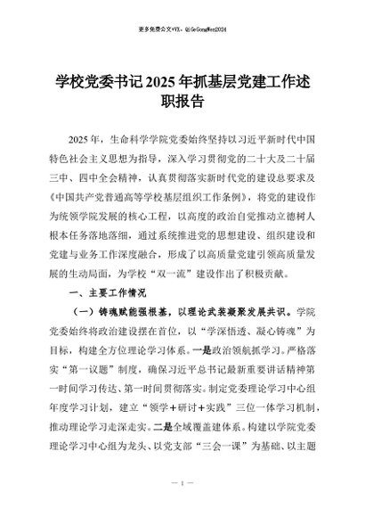 / 【七哥公文】2025年:学校党委书记2025年抓基层党建工作述职报告+更多免费公文+VX:QiGeGongWen2024