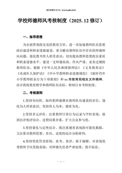 【七哥公文】2025年:学校师德师风考核制度(2025.12修订)+更多免费公文+VX:QiGeGongWen2024