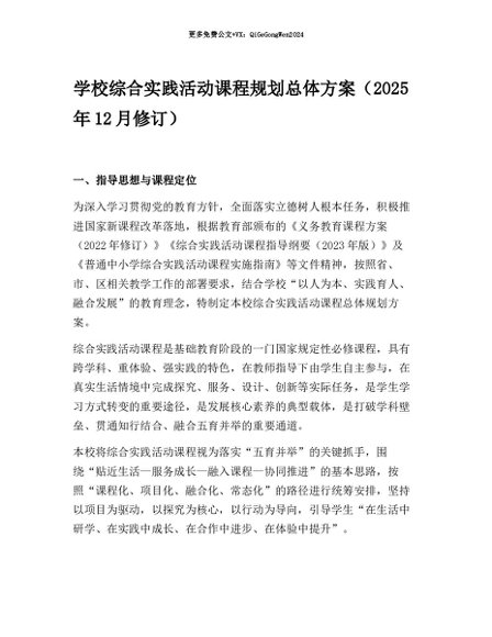 【七哥公文】2025年:学校综合实践活动课程规划总体方案(2025年12月修订)+更多免费公文+VX:QiGeGongWen2024