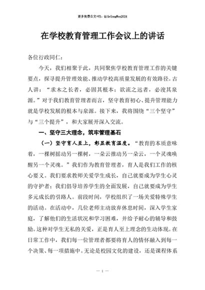 / 【七哥公文】2025年:在学校教育管理工作会议上的讲话+更多免费公文+VX:QiGeGongWen2024