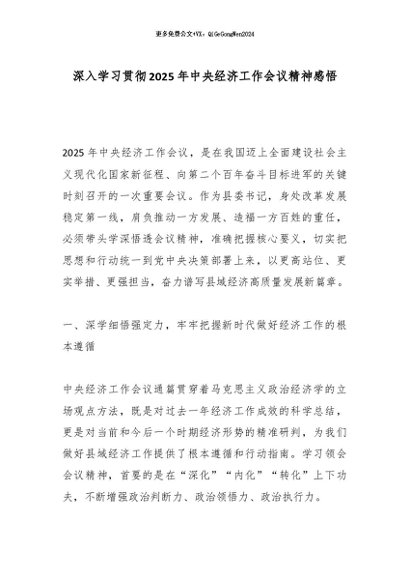 【七哥公文】2025年:深入学习贯彻2025年中央经济工作会议精神感悟_副本+更多免费公文+VX:QiGeGongWen2024