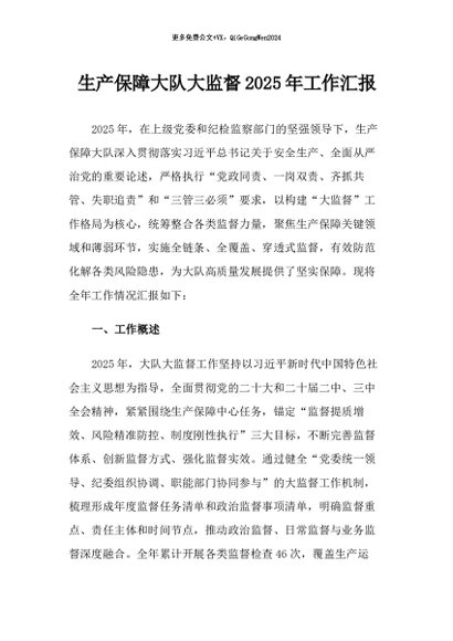 / 【七哥公文】2025年:生产保障大队大监督2025年工作汇报+更多免费公文+VX:QiGeGongWen2024