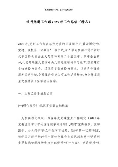 / 【七哥公文】2025年:银行党群工作部2025年工作总结(精品)_副本+更多免费公文+VX:QiGeGongWen2024