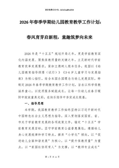 【七哥公文】2025年:2026年春季学期幼儿园教育教学工作计划:春风育芽启新程,童趣筑梦向未来+更多免费公文+VX:QiGeGongWen2024