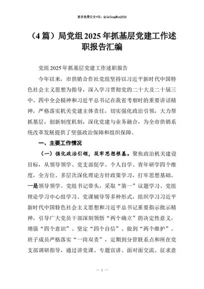 【七哥公文】2025年:(4篇)局党组2025年抓基层党建工作述职报告汇编+更多免费公文+VX:QiGeGongWen2024