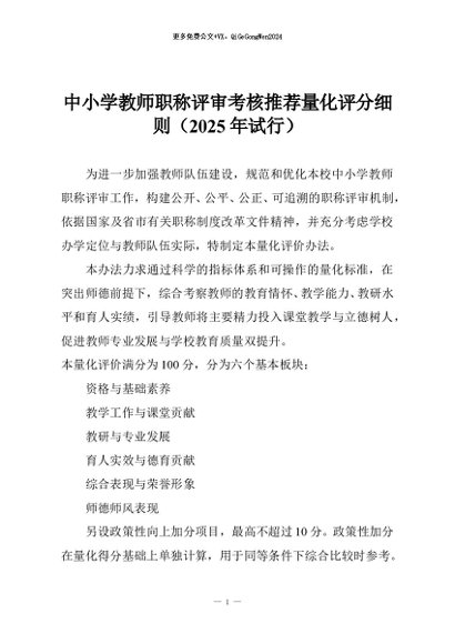 【七哥公文】2025年:中小学教师职称评审考核推荐量化评分细则(2025年试行)+更多免费公文+VX:QiGeGongWen2024