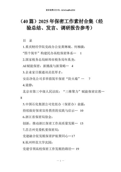 【七哥公文】2025年:(40篇)2025年保密工作素材合集(经验总结、发言、调研报告参考)+更多免费公文+VX:QiGeGongWen2024