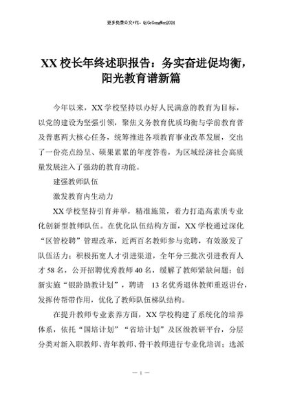 【七哥公文】2025年:XX校长年终述职报告:务实奋进促均衡,阳光教育谱新篇+更多免费公文+VX:QiGeGongWen2024