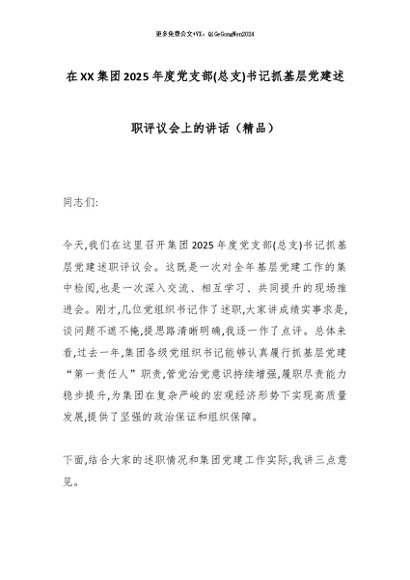 【七哥公文】2025年:在XX集团2025年度党支部(总支)书记抓基层党建述职评议会上的讲话(精品)_副本+更多免费公文+VX:QiGeGongWen2024