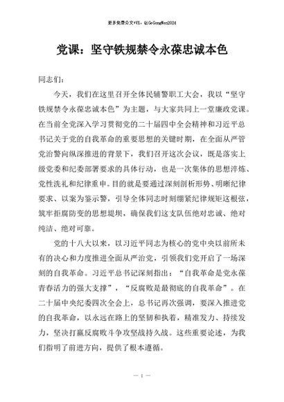 【七哥公文】2025年:党课:坚守铁规禁令永葆忠诚本色+更多免费公文+VX:QiGeGongWen2024