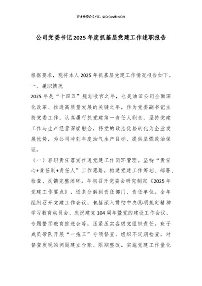 【七哥公文】2025年:公司党委书记2025年度抓基层党建工作述职报告_副本+更多免费公文+VX:QiGeGongWen2024