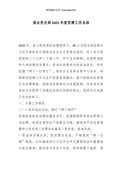 / 【七哥公文】2025年:国企党支部2025年度党建工作总结_副本+更多免费公文+VX:QiGeGongWen2024