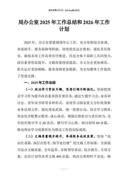 / 【七哥公文】2025年:局办公室2025年工作总结和2026年工作计划+更多免费公文+VX:QiGeGongWen2024