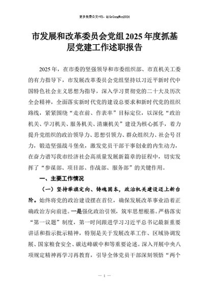 【七哥公文】2025年:市发展和改革委员会党组2025年度抓基层党建工作述职报告+更多免费公文+VX:QiGeGongWen2024