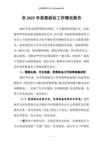 / 【七哥公文】2025年:市2025年思想政治工作情况报告+更多免费公文+VX:QiGeGongWen2024