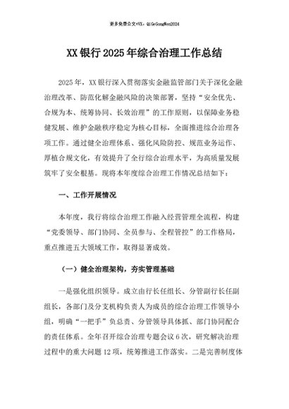 / 【七哥公文】2025年:XX银行2025年综合治理工作总结+更多免费公文+VX:QiGeGongWen2024