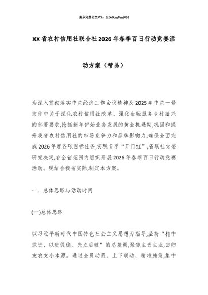 【七哥公文】2025年:XX省农村信用社联合社2026年春季百日行动竞赛活动方案(精品)_副本+更多免费公文+VX:QiGeGongWen2024