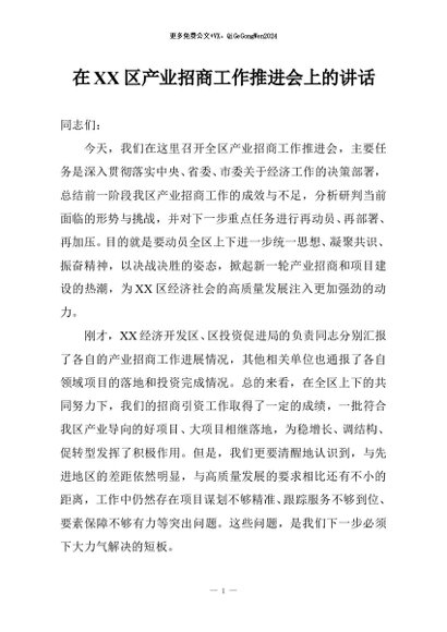 / 【七哥公文】2025年:在XX区产业招商工作推进会上的讲话+更多免费公文+VX:QiGeGongWen2024