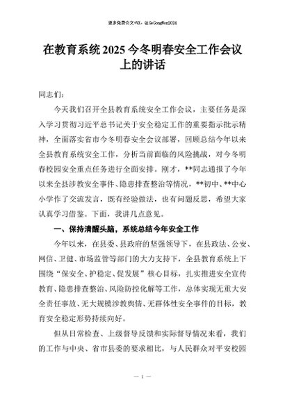 / 【七哥公文】2025年:在教育系统2025今冬明春安全工作会议上的讲话+更多免费公文+VX:QiGeGongWen2024