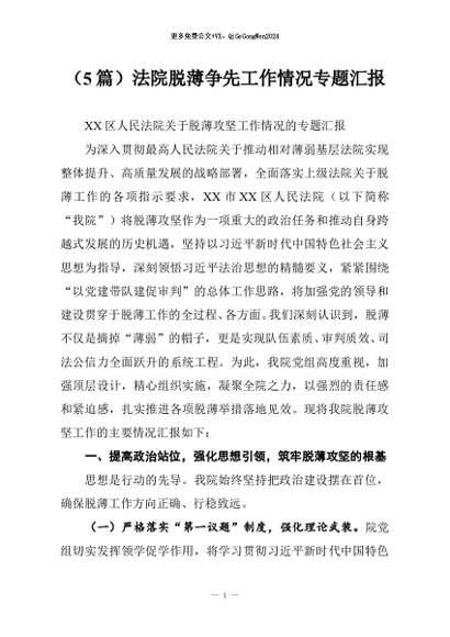 / 【七哥公文】2025年:(5篇)法院脱薄争先工作情况专题汇报+更多免费公文+VX:QiGeGongWen2024