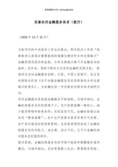 【七哥公文】2025年:完善农村金融服务体系(银行)_副本+更多免费公文+VX:QiGeGongWen2024