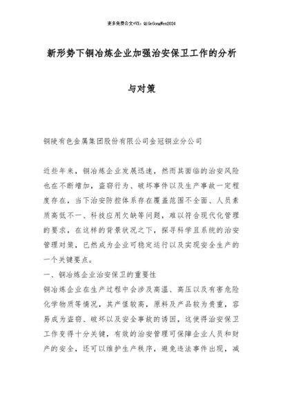 【七哥公文】2025年:新形势下铜冶炼企业加强治安保卫工作的分析与对策_副本+更多免费公文+VX:QiGeGongWen2024
