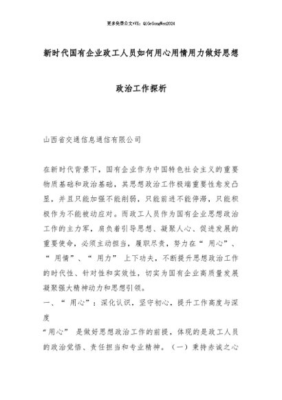 【七哥公文】2025年:新时代国有企业政工人员如何用心用情用力做好思想政治工作探析_副本+更多免费公文+VX:QiGeGongWen2024