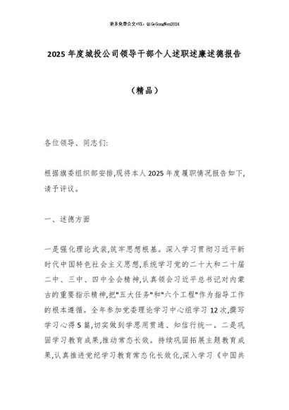 【七哥公文】2025年:2025年度城投公司领导干部个人述职述廉述德报告(精品)_副本+更多免费公文+VX:QiGeGongWen2024