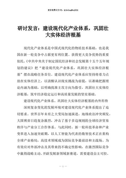 / 【七哥公文】2025年:研讨发言:建设现代化产业体系,巩固壮大实体经济根基+更多免费公文+VX:QiGeGongWen2024
