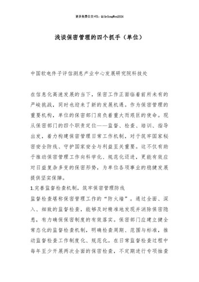 / 【七哥公文】2025年:浅谈保密管理的四个抓手(单位)_副本+更多免费公文+VX:QiGeGongWen2024