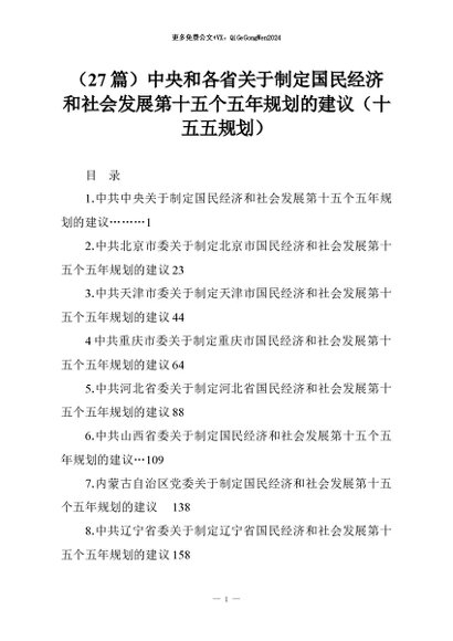 【七哥公文】2025年:(27篇)中央和各省关于制定国民经济和社会发展第十五个五年规划的建议(十五五规划)+更多免费公文+VX:QiGeGongWen2024