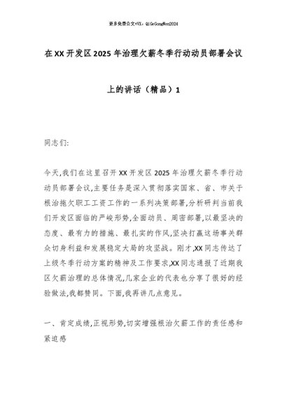 【七哥公文】2025年:在XX开发区2025年治理欠薪冬季行动动员部署会议上的讲话(精品)1_副本+更多免费公文+VX:QiGeGongWen2024