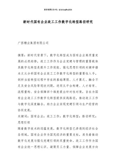 / 【七哥公文】2025年:新时代国有企业政工工作数字化转型路径研究_副本+更多免费公文+VX:QiGeGongWen2024
