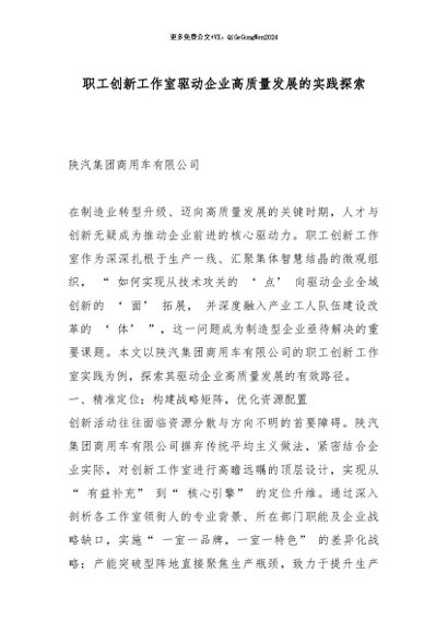 【七哥公文】2025年:职工创新工作室驱动企业高质量发展的实践探索_副本+更多免费公文+VX:QiGeGongWen2024
