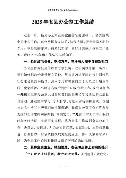 / 【七哥公文】2025年:2025年度县办公室工作总结+更多免费公文+VX:QiGeGongWen2024