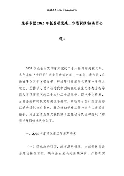 【七哥公文】2025年:党委书记2025年抓基层党建工作述职报告(集团公司)6_副本+更多免费公文+VX:QiGeGongWen2024