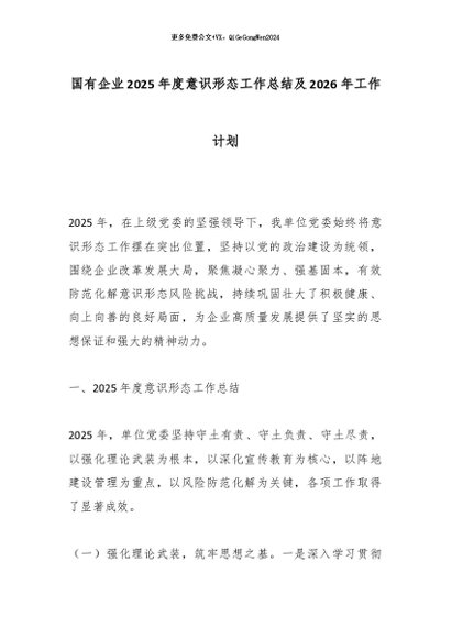 【七哥公文】2025年:国有企业2025年度意识形态工作总结及2026年工作计划_副本+更多免费公文+VX:QiGeGongWen2024