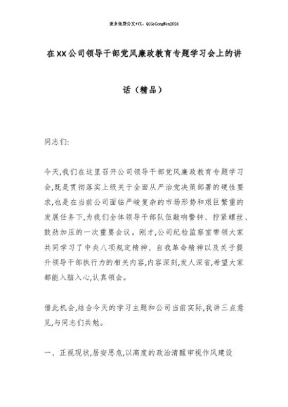 【七哥公文】2025年:在XX公司领导干部党风廉政教育专题学习会上的讲话(精品)_副本+更多免费公文+VX:QiGeGongWen2024