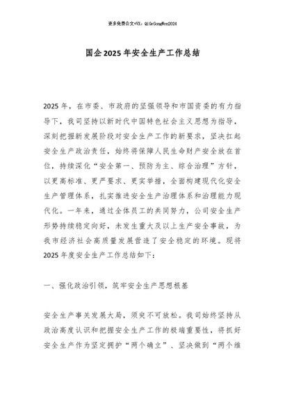 / 【七哥公文】2025年:国企2025年安全生产工作总结_副本+更多免费公文+VX:QiGeGongWen2024