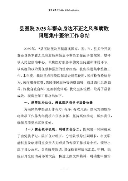 【七哥公文】2025年:县医院2025年群众身边不正之风和腐败问题集中整治工作总结+更多免费公文+VX:QiGeGongWen2024