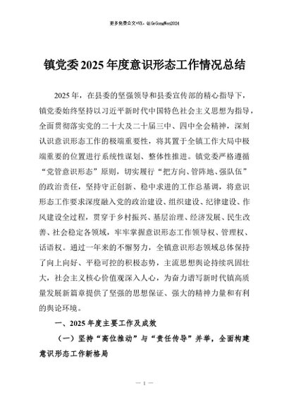 / 【七哥公文】2025年:镇党委2025年度意识形态工作情况总结+更多免费公文+VX:QiGeGongWen2024