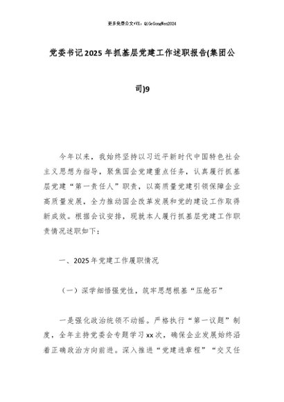 【七哥公文】2025年:党委书记2025年抓基层党建工作述职报告(集团公司)9_副本+更多免费公文+VX:QiGeGongWen2024