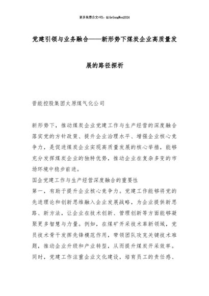 【七哥公文】2025年:党建引领与业务融合——新形势下煤炭企业高质量发展的路径探析_副本+更多免费公文+VX:QiGeGongWen2024
