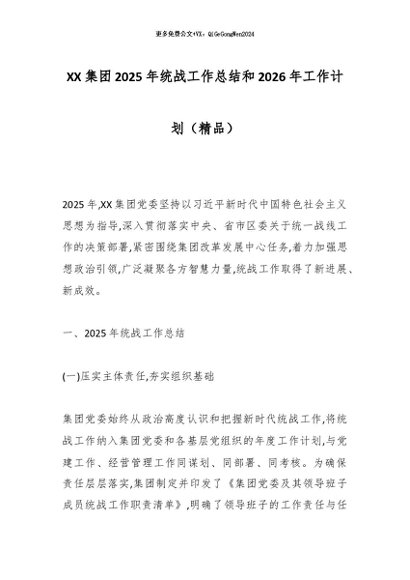 【七哥公文】2025年:XX集团2025年统战工作总结和2026年工作计划(精品)_副本+更多免费公文+VX:QiGeGongWen2024