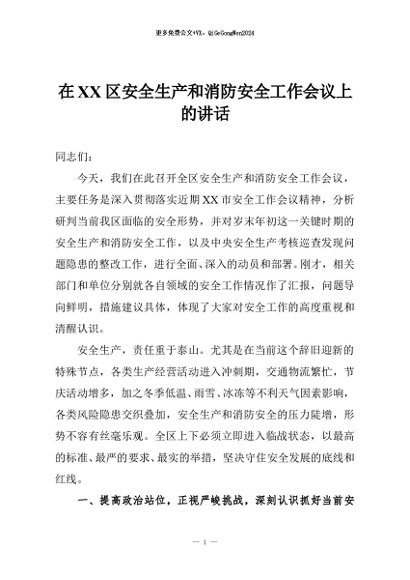 / 【七哥公文】2025年:在XX区安全生产和消防安全工作会议上的讲话+更多免费公文+VX:QiGeGongWen2024